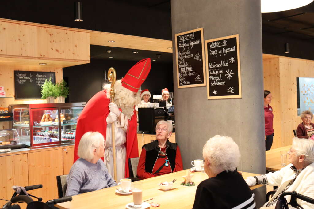 Der Samichlaus hat zu seinem Besuch im Zentrum Biffig eine schöne Geschichte mitgebracht, die er unseren Bewohnern erzählt hat. Er hat sich für jede der anwesenden Personen im Restaurant Zeit genommen und nachgefragt, wer denn ein Sprüchlein für ihn hat. Er wusste allerlei zu erzählen, was im Biffig so läuft und wer was gerne oder weniger gerne mag. Natürlich hat der Schmutzli einen grossen Sack mit Klaussäckli mitgebracht, sodass jeder der Anwesenden eines bekommen hat. Auch beim Verteilen der Brämi war der Schmutzli fleissig.